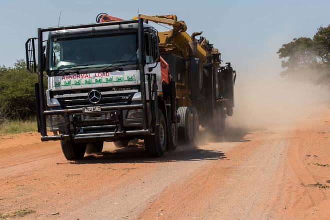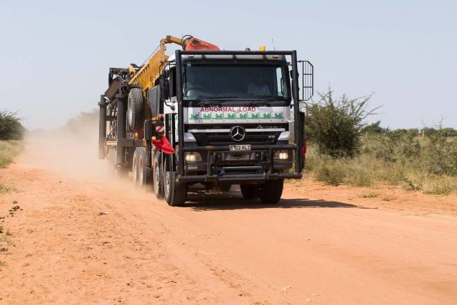 „Petros ist unser bester Offroad-Fahrer,“ sagt Rudie de Wet, einer der drei Brüder, die das Unternehmen derzeit führen, über den 57-Jährigen. Seit 1984 sei er als Lkw-Fahrer unterwegs, sagt Petros Moremi über sich selbst, und dass er allmählich müde sei und ans Aufhören denke. Seit 30 Jahren arbeitet er jetzt bei der Familie de Wet, seit ungefähr 15 Jahren fährt er 8x8-Trucks. Ist er auch schon mal am Straßenrand gestrandet und musste tagelang auf Hilfe warten? „Ich hatte unterwegs noch nie ein größeres Problem mit meinen Fahrzeugen. Die werden bei uns grundsätzlich gut gewartet und für den Einsatz im Outback bestmöglich vorbereitet,“ erzählt Petros. Bis zu zwei Monate lang ist er mit seinen Kollegen irgendwo in der Wüste oder im Busch unterwegs, sie schlafen dann im Zelt und bekommen es mit Skorpionen, aggressiven schwarzen Mambas, Wildhunden, Hyänen, Büffeln, Löwen und anderen gelegentlich unfreundlichen Tieren zu tun, erzählt der altgediente Fahrer: „Du wachst am Morgen auf, gehst aus dem Zelt, siehst die Fußspuren von einem Löwen und wunderst dich, warum er weitergezogen ist, ohne dir was zu tun. Das ist unser Leben, wir sind es nicht anders gewohnt“