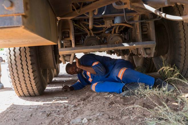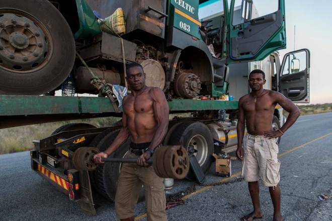 Im Süden Afrikas brauchen Lastwagenfahrer viel Geduld. Sie warten wochenlang an Grenzen oder, nach einem Unfall, tagelang auf den Kran. Einige nutzen die Wartezeit, um ihren Körper zu modellieren. Wir trafen die Trucker mit den gut definierten Muskeln im Norden Botswanas.