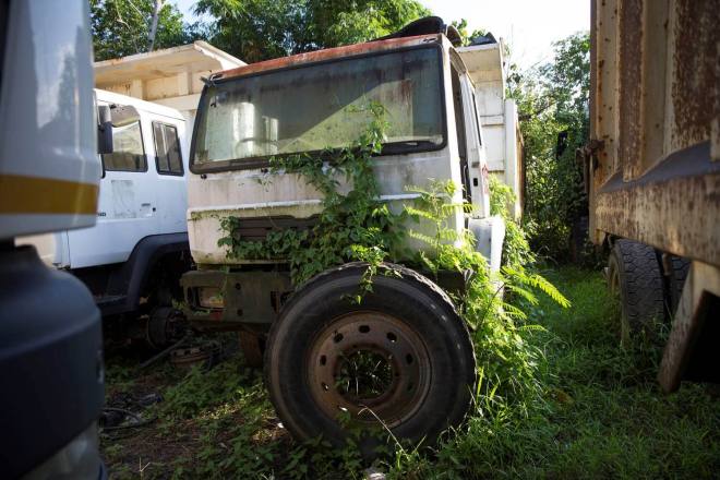 Die Antwort fiel denkbar knapp aus: „Die verwenden ja nicht gerade unser aktuelles Branding,“ war der kurzangebundene Kommentar eines MAN-Mitarbeiters aus der Zentrale in München, als er die Fotos von der Serviceniederlassung in Balikpapan sah. In der Tat – das Erscheinungsbild von Verwaltungsgebäude und Werkstatt der Dependance in der indonesischen Hafenstadt entspricht nicht dem schmucken Design, das die Marketingabteilung für die MAN-Standorte entwickelt hat. Aber, mit Verlaub, wen stört das bei einem Außenposten auf einer indonesischen Insel? Die Kunden am allerwenigsten. Die interessieren sich hier vor allem für die Funktionalität des Servicebetriebs und noch mehr für die finanziellen Aspekte eines Besuches: Wie schnell und wie günstig können mir die Mitarbeiter Original-Ersatzteile besorgen? Wie schaffe ich es, den Preis für Reparatur- und Servicearbeiten, die von den eigenen Mitarbeitern nicht erledigt werden können, möglichst niedrig zu halten? Wie schlage ich möglichst viel für meinen gebrauchten Truck heraus? Von denen stehen einige auf dem Hof, der fast schon wie ein Biotop wirkt: Ein kleiner Waran verkriecht sich schnell unter die Trucks, wenn Menschen in seine Nähe kommen. Tropisches Grün wuchert auf, neben oder in den Fahrzeugen, die zum Teil nur ein Jahr lang im Einsatz waren, aber aussehen wie Veteranen und in der kurzen Zeit so übel zugerichtet wurden, dass die Besitzer sie gegen Neufahrzeuge eintauschten. „Die werden nach und nach generalüberholt und dann weiterverkauft,“ erzählt Nyoman Minggu, der Niederlassungsleiter in Balikpapan. Das Ergebnis ist bei einigen Fahrzeugen zu besichtigen, die ganz ordentlich aussehen – solange man nur die Fahrerhäuser betrachtet. Aber eine zerkratzte Kippmulde neu zu lackieren würde hier wohl als Vergeudung von Ressourcen betrachtet. Irgendwie ist das nachzuvollziehen, denn nach einer Woche im nächsten Mineneinsatz wäre die frische Fahrbschicht ohnehin wieder weggescheuert oder zumindest nicht mehr zu erkennen.