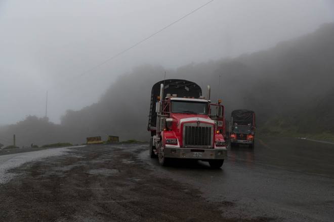 Trucker in Kolumbien dürfen arbeiten, so lange sie wollen, sie schlafen im Hotel und sind oft mit uralten Fahrzeugen unterwegs. Ein halber Bremsbelag ist kein Problem, so lange die Motorbremse noch funktioniert. Ein Bericht aus einem Land, das seinen Frieden sucht.