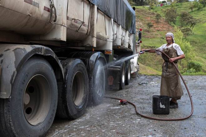 Die meisten Trucker beherrschen ihr Handwerk und meistern die engen, gebirgigen Straßen mit großer Gelassenheit und Präzision, auch wenn sie in bestimmten Abschnitten stundenlang kaum einmal über Tempo 30 hinaus kommen. So wie Cesar Correa, der seit 27 Jahren als Lkw-Fahrer arbeitet und seinen Truck kurz vor Bogotá noch einmal waschen lässt. Mit dem acht Jahre alten International macht der verheiratete Vater von zwei Kindern in der Woche rund 2000 Kilometer, er liegt also ungefähr im kolumbianischen Durchschnitt. Zu schaffen ist das für die Fahrer unter anderem auch, weil es keine Begrenzung der Lenkzeiten gibt: „Wir fahren so lange, wie es nötig ist oder wie wir können,“ sagt Cesar. Dann wird geschlafen – und zwar in einem Hospedaje oder Hotel. Trucks mit Fernverkehrs- bzw. Schlafkabinen gibt es in Kolumbien so gut wie nicht. Auch Correa weiß, dass der Beruf nicht ungefährlich ist, dass es viele Unfälle gibt. In Bezug auf die Verkehrsopfer weist das südamerikanische Land mit jährlich ca. 17 Toten pro 100.000 Einwohner einen ungefähr vierfach höheren Wert aus als Deutschland.