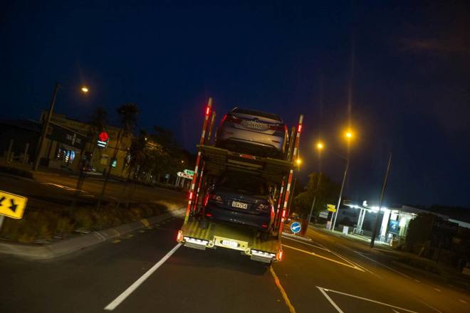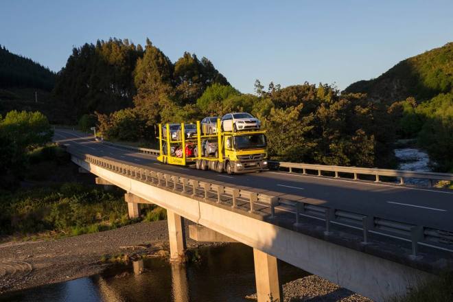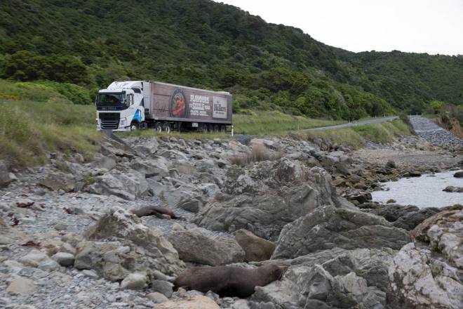 Eine der Linien verbindet auf der Südinsel Christchurch mit dem Fährhafen in Picton. Zwischen Picton und dem Hafen in der Hauptstadt Wellington (auf der Nordinsel) sorgen große Fährschiffe für die Verbindung der beiden Landesteile. Um vier Uhr morgens fährt Logan Cassidy vier- bis fünfmal pro Woche los, liefert seine Auto-Ladung in Picton ab oder tauscht dort mit einem Kollegen den Truck und fährt dann wieder zurück nach Christchurch. „Sieben- bis achthundert Kilometer am Tag sind das,“ erzählt Logan. Auf einer Straße, die zwar den stolzen Titel „State Highway 1“ trägt, aber speziell die Brücken und Tunnels sind so eng, dass man vermuten könnte, sie wären zu einer Zeit gebaut worden, als Transportunternehmer noch Pferdefuhrwerke einsetzten. Selbstverständlich ist dieser Highway keine Autobahn nach europäischen Verständnis, sondern eine enge, zweispurige Straße mit einigen tausend Kurven auf den 370 Kilometern, die Logan täglich befährt. „Wenn du die Straße nicht kennst, bist du verloren,“ sagt der Fahrer. Der Job sei anstrengend, vor allem im Winter, wenn Schnee und Eis die Strecke tückisch machen. Was einen neuseeländischen Trucker wie Logan von seinen europäischen Kollegen unterscheidet: Viele Fahrer sind hier jeden Abend wieder zu Hause. Und weil es keine Truckstops gibt, schlafen sie auf längeren Strecken im Motel: „Das zahlt das Unternehmen,“ sagt Chris Carr. Und fügt augenzwinkernd hinzu, sonst würden die Fahrer schnell zu duften beginnen.