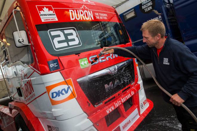 Wenn nichts mehr normal ist, dann ist das normal beim Deutschen Truck Grand Prix auf dem Nürburgring. Es gibt wohl keine andere Veranstaltung im Jahreskalender der Truck Racer, die es an Verrücktheit mit dem größten und wichtigsten Event aufnehmen kann. Irgendwie klingt das Ganze unglaublich, aber jeder einzelne der inzwischen 32 Truck Grand Prix’ hat seine eigene, sehr spezielle und unverwechselbare Geschichte. Bei der jüngsten Auflage war es wieder einmal das Wetter, das der Veranstaltung seinen Stempel aufdrückte, sowie der Brite Stuart Oliver, der unfreiwillig dafür sorgte, dass der Truck Grand Prix früher als geplant zu Ende ging.