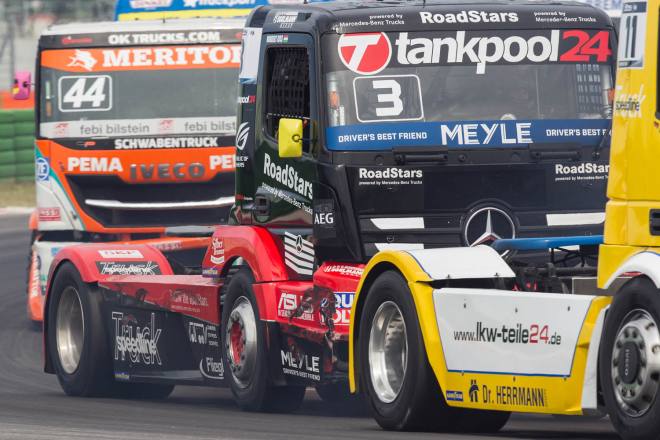 Während Jochen Hahn die EM-Wertung mit einem Vorsprung von 16 Punkten vor Steffi Halm anführt, die wiederum fünf Zähler Vorsprung vor Antonio Albacete hat, wird es danach ziemlich eng: Den drittplatzierten Spanier und Norbert Kiss auf Platz 6 trennen gerade einmal vier Punkte. Das Duo hat Sascha Lenz (Sieger im Rennen 3) und Adam Lacko zwischen eingeklemmt. Der enge Abstand ist ein Indiz für die Leistungsdichte in der European Truck Racing Championship, in der zumal in den Rennen mit gedrehtem Start ungefähr zehn Piloten in der Lage sein dürften, sich ganz oben auf dem Podest zu platzieren.