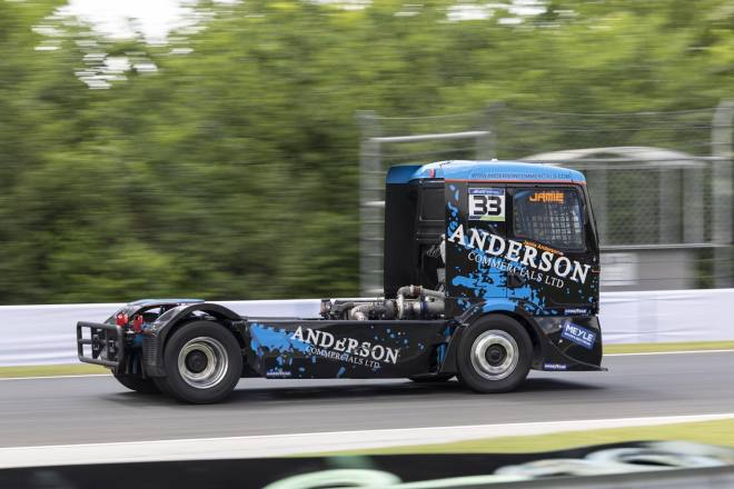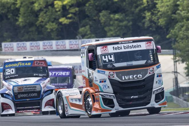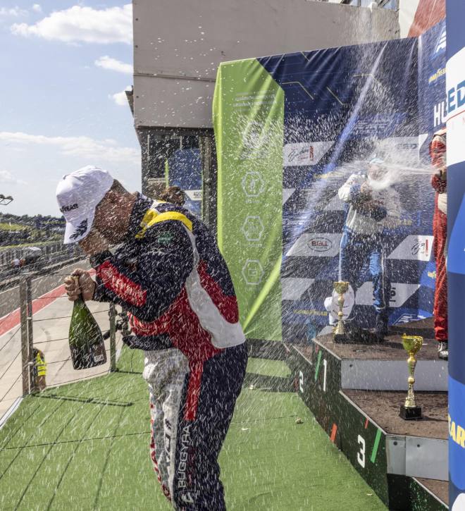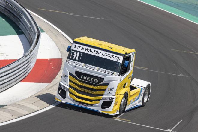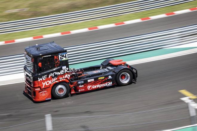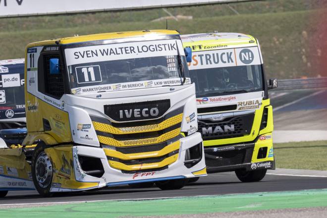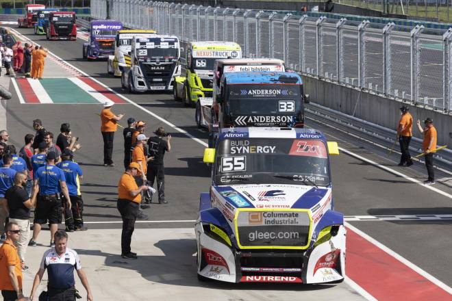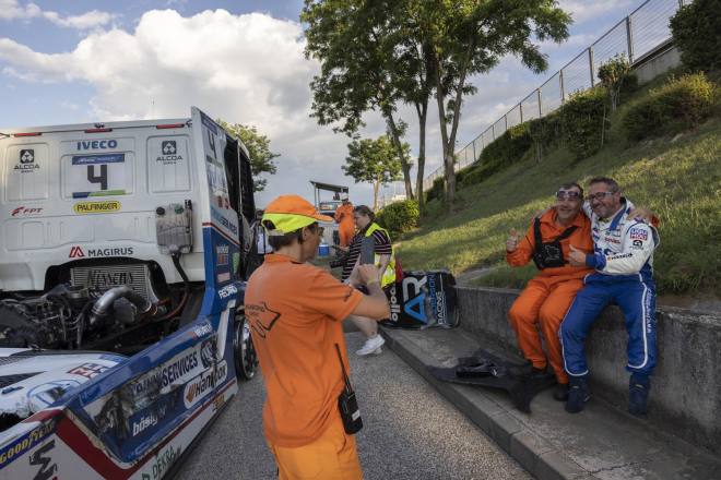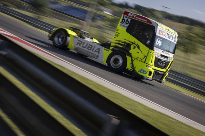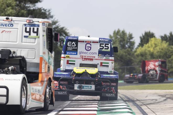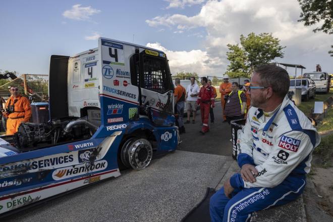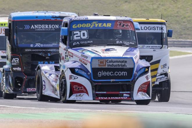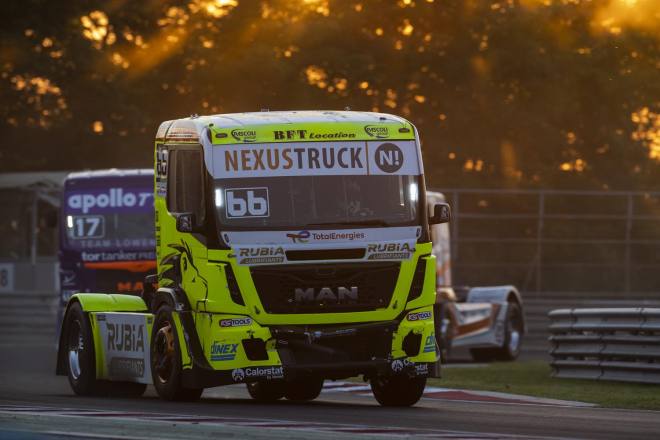 Kurios: Am Vortag hatte die ETRA eine Pressemitteilung verschickt, in der über eine Machbarkeitsstudie für Langstreckenrennen mit Racetrucks berichtet wurde – die seien prinzipiell machbar, hieß es in dem Text. Das Feeling beim spät erneut gestarteten Championshiprace 2 passte dazu perfekt: Die Trucks donnerten vor der Kulisse eines malerischen Sonnenuntergangs um die 4,381 Kilometer lange Rennstrecke, aufgewirbelte Staubwolken schimmerten in den schönsten Orangetönen. Von übrig gebliebenen Matadoren machten Lacko und zwei Deutsche das Rennen unter sich aus: Der Tscheche gewann am Ende, André Kursim verteidigte zäh den zweiten Platz und behauptete sich dabei gegen Sascha Lenz.