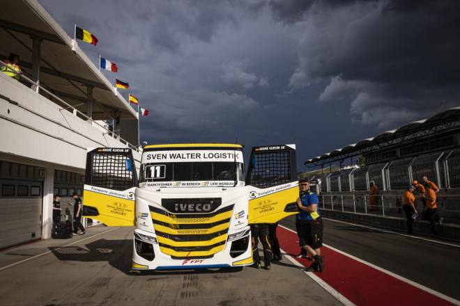 Wie nicht anders zu erwarten, wurde das zweite Rennwochenende der Saison 2022 zum Kiss-Festival. Vor einer beeindruckenden Zuschauerkulisse zeigte sich der aktuelle Europameister als nahezu unbesiegbar, dreimal stand Norbert Kiss ganz oben auf dem Podest. Dass sich der Lokalmatador mit den 50 EM-Zählern für die drei Siege begnügen musste, lag an einer „Verkettung unglücklicher Umstände“, wie es Jochen Hahn ausdrückte: Nach dem Start zu Rennen 2 am späten Samstagnachmittag gab es mal wieder einen veritablen Crash, bei dem etliche Trucks – darunter der rote MAN des Champions – so schwer in Mitleidenschaft gezogen wurden, dass sie zum Neustart nicht mehr antreten konnten.