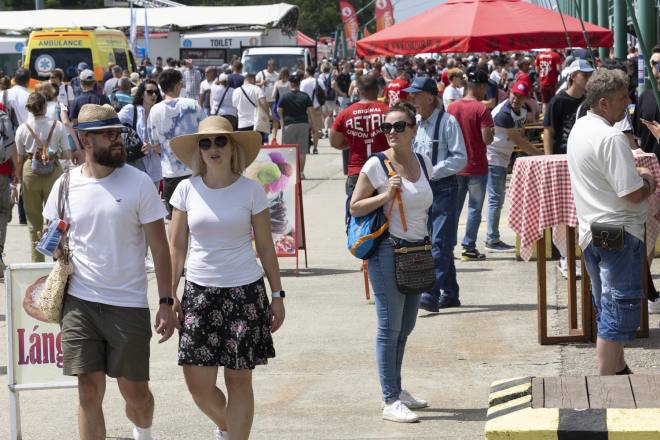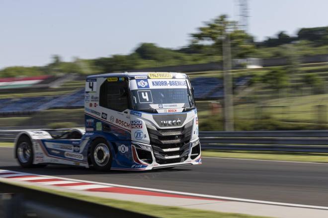 Kiss legte auf seinem Heimatkurs gleich ordentlich los, im den beiden freien Trainings deklassierte er zunächst Antonio Albacete mit 1,76 und dann Jochen Hahn mit 1,58 Sekunden Vorsprung. Welten in der Welt des Motorsports. In der Superpole blieb dann der Zweitplatzierte Sascha Lenz mit einem Rückstand von knapp sieben Zehntelsekunden wenigstens im Bereich von Sekunden-Bruchteilen. Die beiden Teile des Qualifyings fanden, ungewöhnlich für die Veranstaltung auf dem Hungaroring, bereits am Freitagnachmittag statt. Grund dafür waren die beiden anderen Tourenwagen-Serien, die an diesem Wochenende gemeinsam mit den Truckracern auf der Formel 1-Strecke zu Gast waren und viel Zeitbedarf angemeldet hatten. Kurze Nebenbemerkung: In einer dieser Serien fuhren mit Wasserstoff (und E-Motoren) angetriebene Tourenwagen, die sich bei der Vorbeifahrt anhörten wie Kameradrohnen – sehr gewöhnungsbedürftig, um es zurückhaltend auszudrücken.