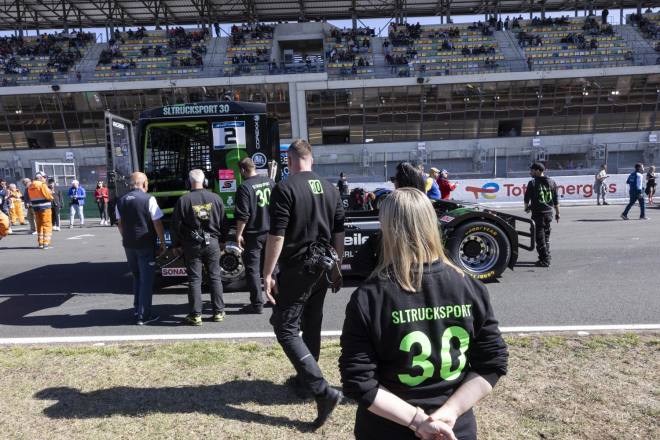 Häufig passieren im Rennsport die unerwarteten Dinge, manchmal läuft aber auch alles „nach Plan“: Dass der amtierende Europameister auch der neue Champion sein würde, war ebenso erwartbar wie der Tag, an dem Norbert Kiss erneut als König der Truckracer feststand. Am Sonntag hatte der ungarische Motorsportler nach dem dritten Championshiprace genügend Punkte auf sein Konto geschaufelt, um auch rechnerisch uneinholbar in Front zu liegen. Über 70 Punkte musste dann der Vorsprung auf den immer noch Zweitplatzierten Jochen Hahn betragen, um bei ausstehenden fünf Wertungsläufen – einer in Le Mans und vier beim Finale am kommenden Wochenende in Jarama – auf der sicheren Seite zu sein. Während die großen Schweinwerfer hauptsächlich auf den Sieger in der Einzelwertung gerichtet sind, gerät leicht in Vergessenheit, dass es auch eine Teamwertung gibt. Die wurde in Le Mans ebenfalls vorzeitig entschieden, die Kombination Révész & T-Sport Bernau (also Kiss und Antonio Albacete) erwies sich 2022 als stärkstes Duo.