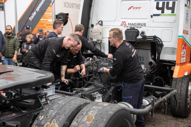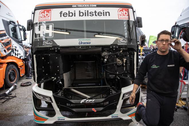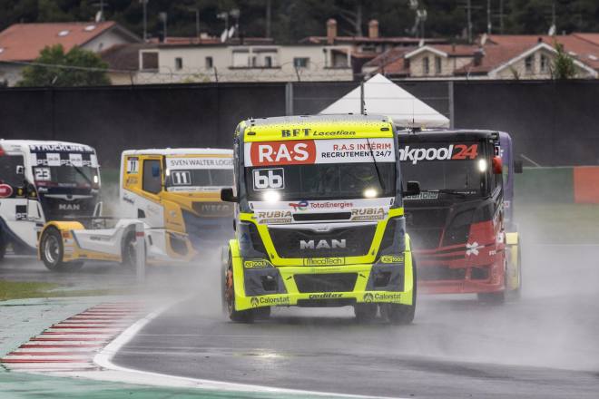 Wobei es im Fahrerlager am Freitag sehr ruhig zuging. Der Zeitplan war angesichts der Tatsache, dass in Misano die Saison eröffnet wurde, für die Teams denkbar ungünstig: Die beiden freien Trainingseinheiten waren erst für Samstag angesetzt, zudem durften die Trucks erst um kurz vor zehn Uhr zum ersten Mal auf die Piste. Rennen 2 wurde um 18.30 Uhr gestartet. Auch am Sonntag sah der Terminplan nur knapp bemessene Pausen zwischen den Auftritten auf der Rennstrecke vor.