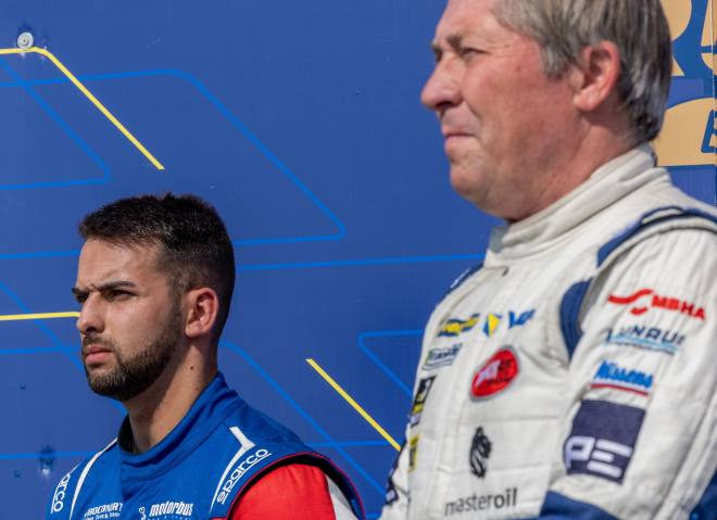Start vom Ende des Feldes: Im zweiten Rennen war es Norbert Kiss, der sich ganz hinten einreihen musste. Was dann folgte, war eine weitere Demonstration der derzeitigen Kräfteverhältnisse. Der Start erfolgte wegen starken Regens erneut unter Gelb, die Reihenfolge veränderte sich also erst nach dem Ende der ersten Runde. Nach dem dritten Umlauf war Kiss bereits in den Top 5, nach fünf Runden hatte er sich an die Spitze gesetzt und spulte das Restprogramm bei weiter anhaltendem Regen deutlich schneller ab als seine Konkurrenten. Knapp über 23 Sekunden betrug nach zwölf Runden der Vorsprung auf Sascha Lenz und knapp 27 auf Antonio Albacete, dem ältesten Fahrer im Feld: Der Ungar fährt definitiv in einer eigenen Liga.