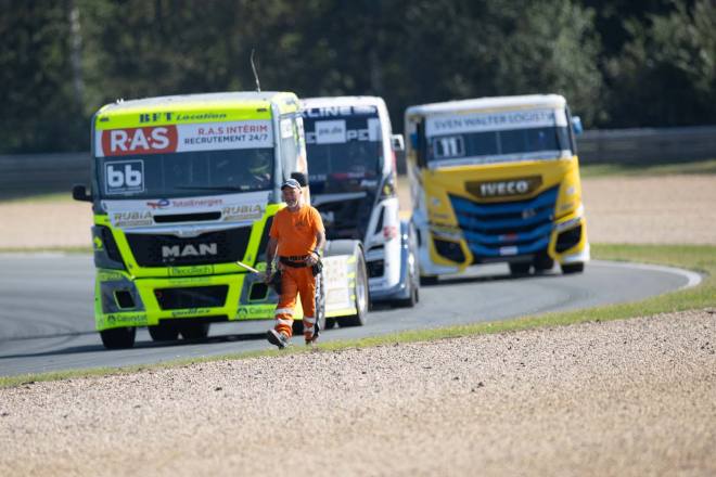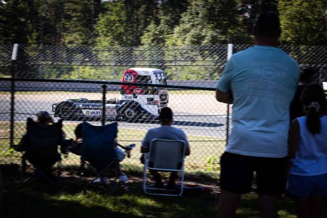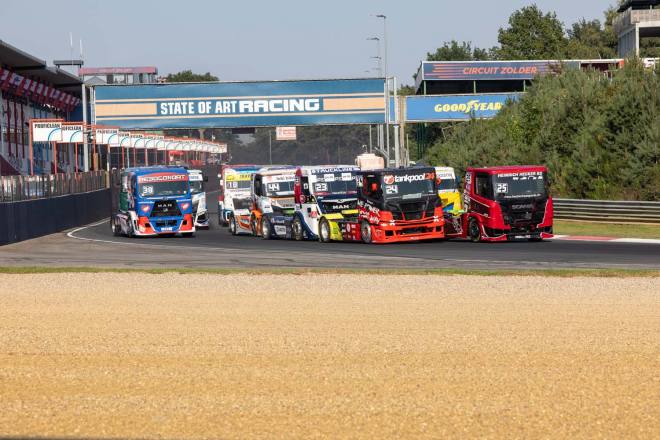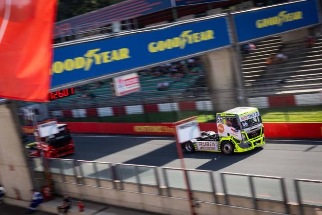 Extreme Wetterausschläge haben immer einen gewissen Einfluss auf die Ereignisse an einem Rennwochenende. Sei es heftiger Regen, so wie in dieser Saison auf dem Slovakiaring oder in Most, sei es extreme Hitze, die Mensch und Maschinen gleichermaßen zu schaffen macht. Völlig ungewöhnlicherweise war das beim sechsten Event des Jahres in Zolder der Fall. Eigentlich konnte sich niemand an vergleichbare Rahmenbedingungen auf der belgischen Rennstrecke erinnern – sollte es also bei einem Truckrennen auf dem Circuit Zolder ähnlich hitzig zugegangen sein, liegt das schon viele Jahre zurück. Der Normalfall hier sind herbstliche Temperaturen und die dazu passende Witterung. Auf jeden Fall hatten die Fahrer und ihre Maschinen einige Mühe, an allen drei Renntagen mit Temperaturen jenseits der 30-Grad-Marke zurecht zu kommen. Der Verdacht lag nahe, dass die beiden Turbolader, die sich im Verlauf des Wochenendes spektakulär zerlegten, nicht zuletzt aufgrund der Hitze den Geist aufgaben.