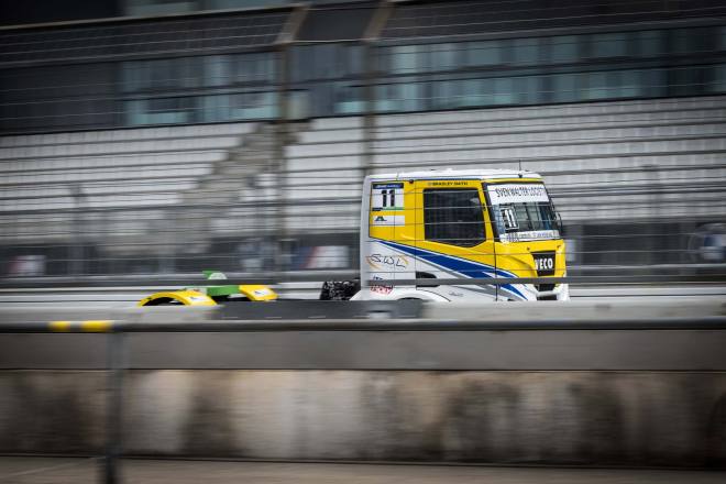 Norbert Kiss ist ja auch bekannt dafür, in den Championshiprennen 2 und 4, die mit gedrehtem Start (reverse grid) durchgeführt werden, von der achten Startposition aus gnadenlos an die Spitze durchzumarschieren. Ein Kunststück, das ihm sowohl in Misano als auch auf dem Slovakiaring gelang. Beim Truck Grand Prix lief es nicht ganz so dominant, der Ungar beendete diese Wertungsläufe mit dem dritten Platz. Die Siege gingen jeweils auf die iberische Halbinsel: Am Samstag triumphierte albacete und bescherte sich und dem Team nach einigen Tiefschlägern wieder einen schönen Erfolg. Aber der Nürburgring gehört zu Albacetes Lieblingsstrecken, hier ist er immer schon gute Ergebnisse eingefahren. Am Sonntag war es dann der junge Jose Eduardo Rodrigues, der sich den Erfolg im 10-Punkte-Rennen sicherte. Albacete wurde auf dem Podium von René Reinert und Kiss eingerahmt, Rodrigues Begleiter auf dem Siegerpodest waren Jochen Hahn und – selbstverständlich: Norbert Kiss. Der hat seinen Vorsprung in der Gesamtwertung auf inzwischen 49 Punkte ausgebaut. Mit Wetten auf einen erneuten Erfolg des Seriensiegers und Titelverteidigers ist auch in diesem Jahr kein Vermögen zu gewinnen.