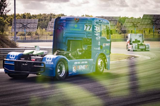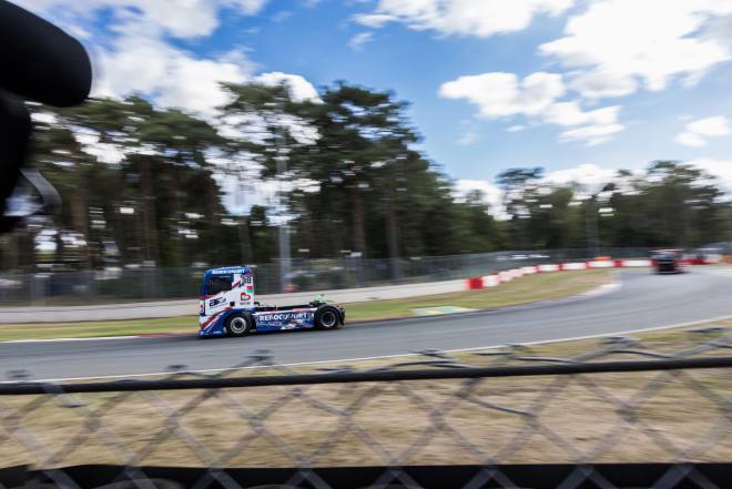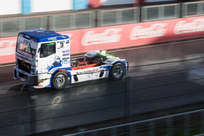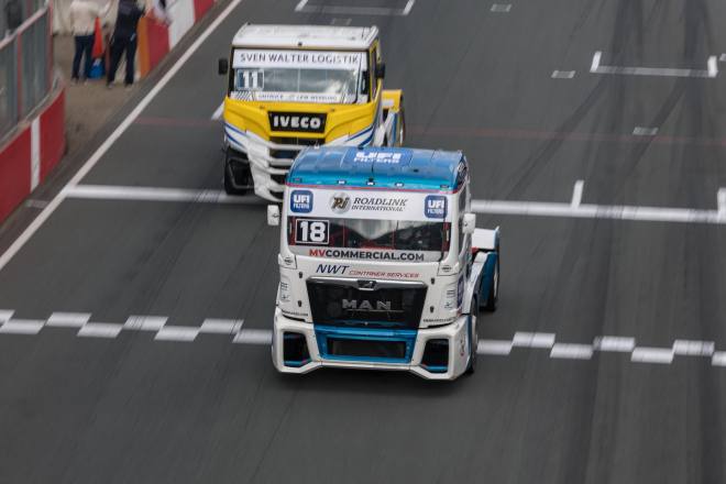 Deutlich spannender ist einmal mehr der Kampf um Platz 3. Steffi Halm bleibt mit dem kleinen Vorsprung von sechs Punkten auf dem Bronzeplatz, aber Sascha Lenz fuhr in Zolder die deutlich besseren Ergebnisse ein (im ersten Wertungslauf wurde er Zweiter) und verkürzte damit den Abstand auf die Fahrerin vom Team Schwabentruck. Mit Abstand folgen René Reinert und Antonio Albacete – der Transportunternehmer gewann das finale Rennen und rangiert nicht zuletzt dank dieses Erfolges mit einem Punkt Vorsprung vor dem Ex-Champion aus Madrid auf Platz 5.