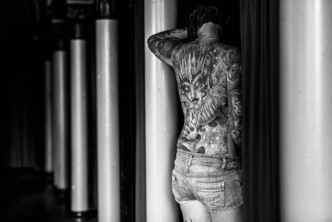 Und noch ein Tattoo-Shooting: Marlen und Carina durfte ich im Alten Stadtbad in Leipzig fotografieren - zwei tolle Models in einer sensationellen Location. Übrigens: Beide Models habe keine Zufalls-Tattoos. Carina hat ihre Rückenbild selbst entworfen (wobei bei ihr auch noch reichlich Platz für andere Bilder wäre), die Bilder auf Marlens Haut erzählen jedes für sich eine kleine Geschichte, die mit dem Leben oder den Gefühlen der jungen Frau zu tun hat. Zum Staunen!